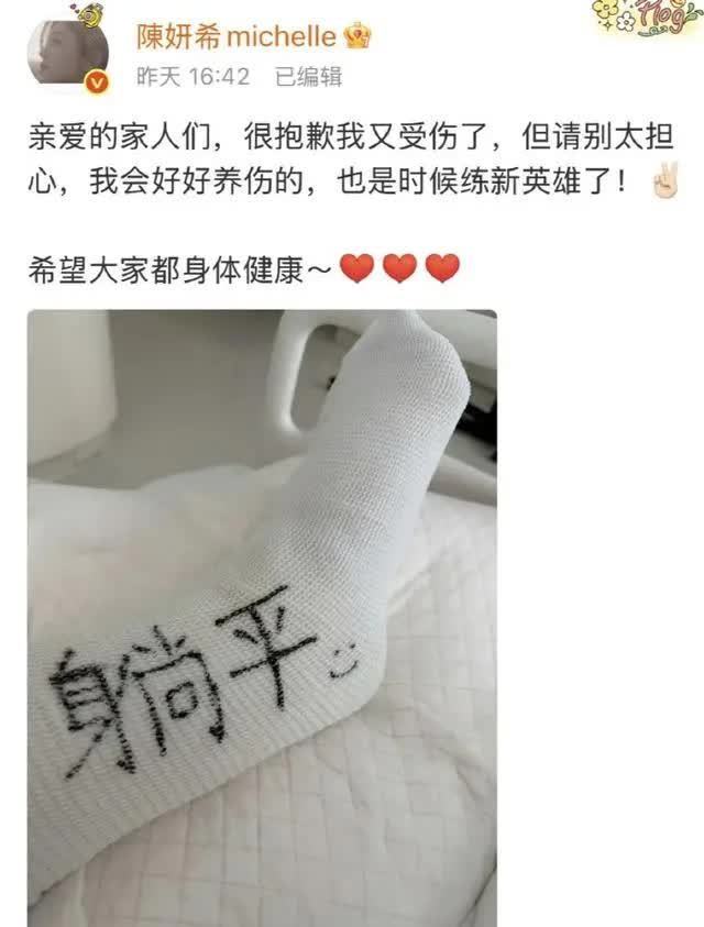 陈妍希这次受伤让不少粉丝心疼,好在她心态一直很积极,身边也有工作人员和好友细心照顾。