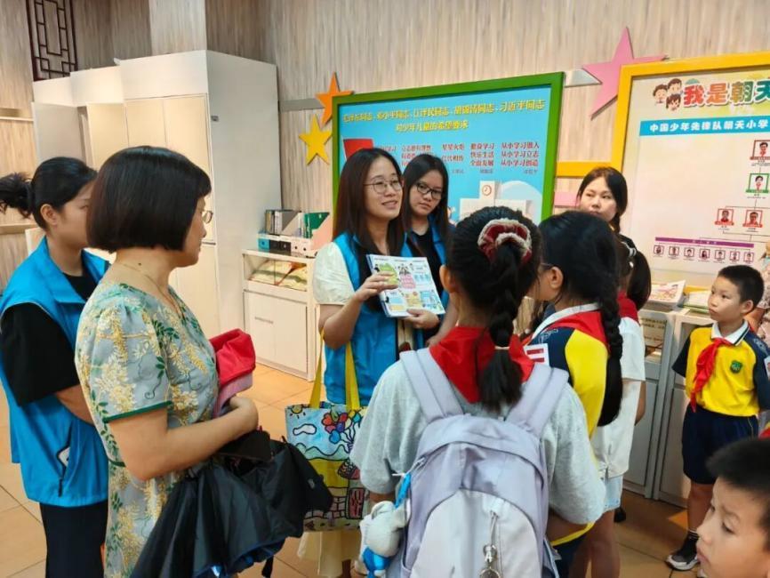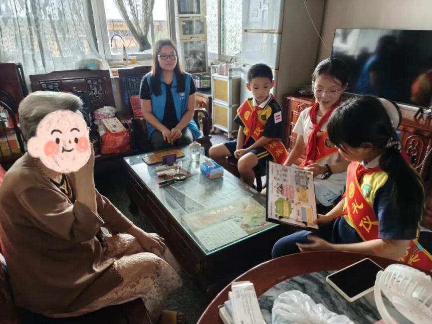 袁慧结合向少先队员讲解全过程人民民主的机会,发动学生参与到代表建议落地的过程中,一起参与民意沟通。她发起了一场特殊的实践:发动教师和少先队员,组建“社校联动”志愿服务队,与光塔街“双百工程”社工站、孝友东社区工作人员一同“扫楼”入户,倾听民声,汇聚民智。